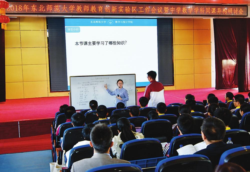 在实验区布局不断扩大的背景下,东北师大对症当下基础教育改革发展的突出病症,不断开具良方,同时以大学为纽带、实验区为平台,将各个彼此孤立的实验区串点成线,连线成网,为不同区域的基础教育资源信息交互、优势互补提供便利。学校还充分利用教师教学中存在同课异构的情况,让实验区的老师彼此切磋互鉴,提升教学水平。此外,东北师大数字化实践教学平台也开设了名师讲堂、基础教育名师论坛模块,整合优质教学资源和相关视频,为教师提供丰富的专业指导。