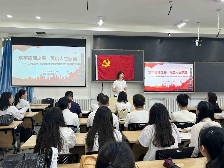 为深入学习贯彻习近平新时代中国特色社会主义思想,推动党纪学习教育走深走实,引导学生党员在学思践悟中坚定理想信念,近日,我校文学院党委举办了预备党员宣誓仪式暨毕业生党员教育大会。学院党委书记解玲、预备党员及毕业生党员参加了此次大会。