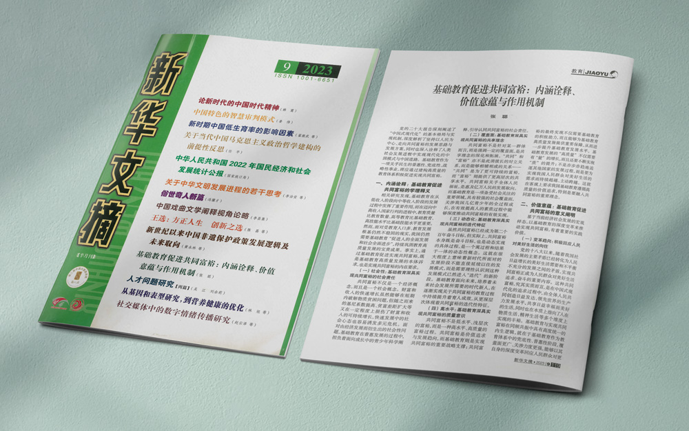《基础教育促进共同富裕:内涵诠释、价值意蕴与作用机制》刊发于《中国教育学刊》2023年第1期,作为封面论文及“学习宣传贯彻党的二十大精神”专栏首篇,系我校教育学部张聪教授从事教育基本理论研究所取得的阶段性成果。 习近平总书记在党的二十大报告中明确指出,“中国式现代化是全体人民共同富裕的现代化”。中国特色社会主义现代化的发展进程,正是依靠教育实现人力资源全面开发支撑下的共享发展的现代化模式。基础...