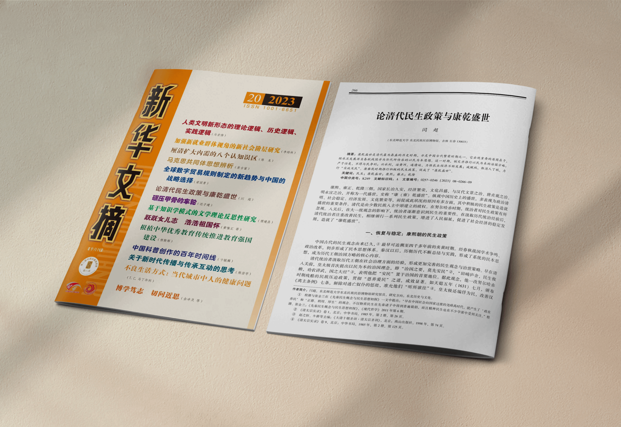 《论清代民生政策与康乾盛世》刊发于《社会科学战线》2023年第8期(总第338期),被《新华文摘》2023年20期(总第776期)作为封面文章全文转载。该文系我校东北民族民俗博物馆东北历史与文化研究团队的阶段性成果,作者为闫超研究馆员。 盛世之治的形成与发展离不开对民生的高度重视与有效改善,而民生的改善又是盛世之治的重要标志和具体体现。清代统治者基于历代王朝社会治理的深刻反思与经验积累,逐步形成了富有时代...